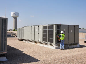 The companies that occupy commercial office space within the building located at 7979 Beltline in Irving, Texas depend on the comfort provided by six large RTU units. The office building is only two stories but is two decades old. These roof top units that are self-contained heating, ventilation, and air conditioning (HVAC) systems were at the end of their lifecycle. The building owner, looking to serve his tenants, reached out to us at Evolution Mechanical, a mechanical service contractor with expertise in commercial heating and cooling systems, to remedy the problem.